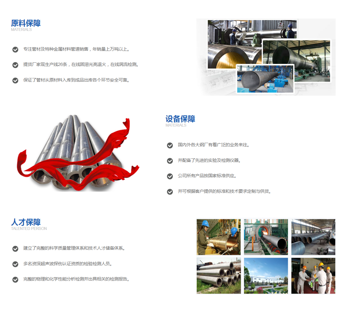 山東鑫盛鑫鋼鐵有限公司是一家專業(yè)銷售:無縫鋼管,合金管,異型管,精密管,圓鋼,軸承鋼的大型無縫鋼管廠廠家。可定做,多種規(guī)格,多種型號的無縫鋼管。另常年兼營成都、包鋼、冶鋼、魯寶、鞍鋼、安陽、洪都、天津等幾大鋼廠的國產進口的無縫鋼管、無縫管、流體鋼管、直縫焊管,經營品種多、規(guī)格齊全,保質保量,常年庫存保有量7000噸以上。所售產品均執(zhí)行國家標準,適用于工程、煤礦、紡織、電力、鍋爐、機械、軍工等各個領域。公司始終堅持“公正、客觀、科學、誠信”的經營原則,重合同、守信譽、保質保量、按期交貨”。多年來公司憑借良好的信譽、優(yōu)質的產品、低廉的價格享譽全國30多個省、市、自治區(qū),產品出口歐洲、南美等十多個國家,深得用戶信賴! 常備材質:20#、45#、20G、16Mn、27SiMn、12Cr1MoVG、15CrMo、T91、10CrMo910、STFA25(P5)、STFA26(P9)、P11、P12、A335P91、A335P92、WB36[15NiCuMoNB5]、鋼研102(12Cr2MoWVTiB)等。執(zhí)行標準為:結構管GB8162-1999、流體管GB8163-1999、低中壓鍋爐管GB3087-1999、液壓支架管GB17396-1999、高壓鍋爐管GB...